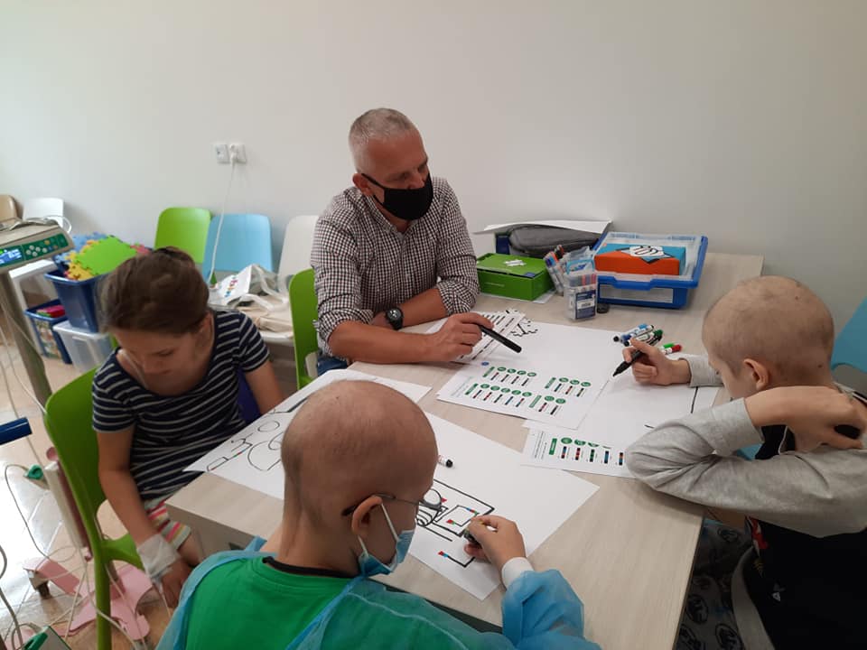 Zajęcia z wykorzystaniem programów, aplikacji i kurs programowania dla nauczycieli i dzieci hospitalizowanych w klinikach pediatrycznych UCK i Pomorskiego Centrum Chorób Zakaźnych i Gruźlicy w Gdańsku oddział Hematologii.